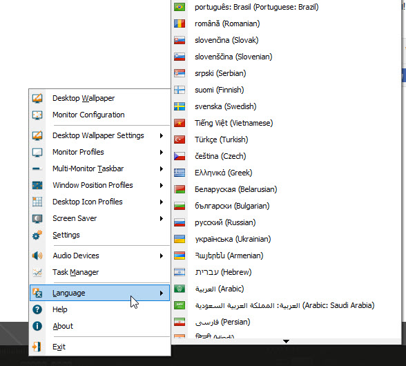 Right click on the/a DF taskbar and select 'Settings' then Language. Restart the program after you have made your choice and selected OK.