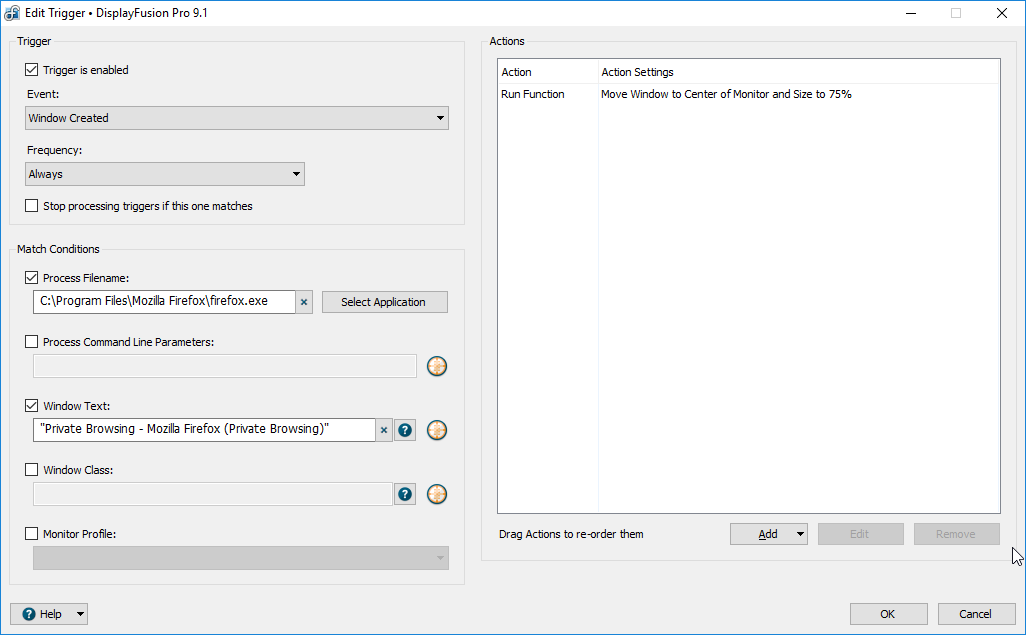 BFS.DisplayFusion.RunFunctionWithWindowHandle("Move Window to Center of Monitor and Size to 75%", windowHandle);