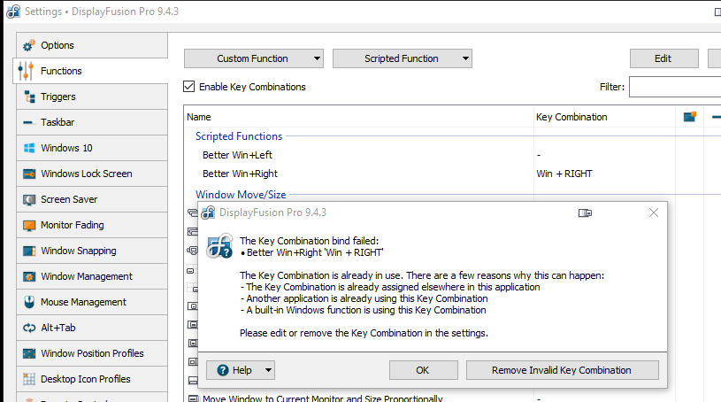 The Winkey + Right and Left Arrow combination has now been disabled.