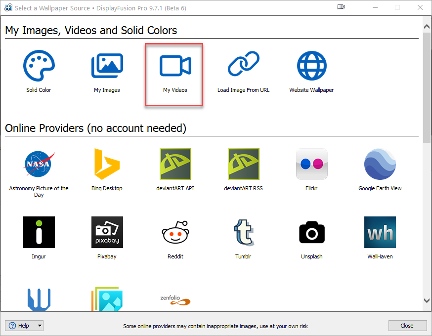 I don't seem to have the option for 'My Videos' as a source. I am using the beta version aswell