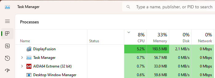The CPU usage depends on your system, and which features in DisplayFusion are enabled. A bit of usage is expected as DisplayFusion uses background polling to keep it's features updated, but 8.3% is a bit high