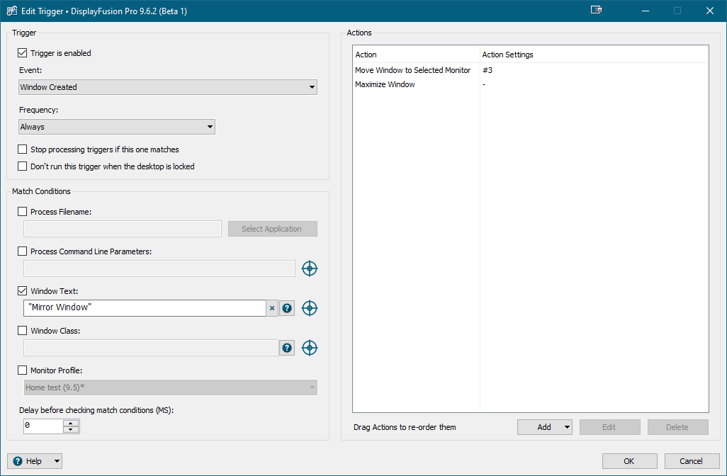 Is there a way to set a Trigger rule for Mirror Windows with no borders? I have found that when there are no borders, the Trigger rule doesn't detect the Window Text since there is no border to show such text.