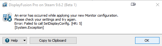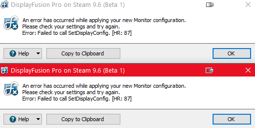 It changed displays both time, but when I unlocked my PC, I found the errors shown in the attachment. Clicking OK on them changed back to the previous Monitor profile as before.