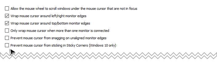 I've used the mouse scrolling at the right/left and top bottom edges for ages. Suddenly (I am not sure which version) the function stopped working. I use two monitors and this is a very convienient function. I have turned the function on and off and rebooted several times - the mouse refuses to scroll to the next monitor.