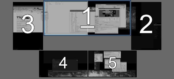 Is there a reason you need the gap in the middle there? If you bring monitor 1 down so that the edges touch, then the mouse would move between 4/5 and 1 without issues.