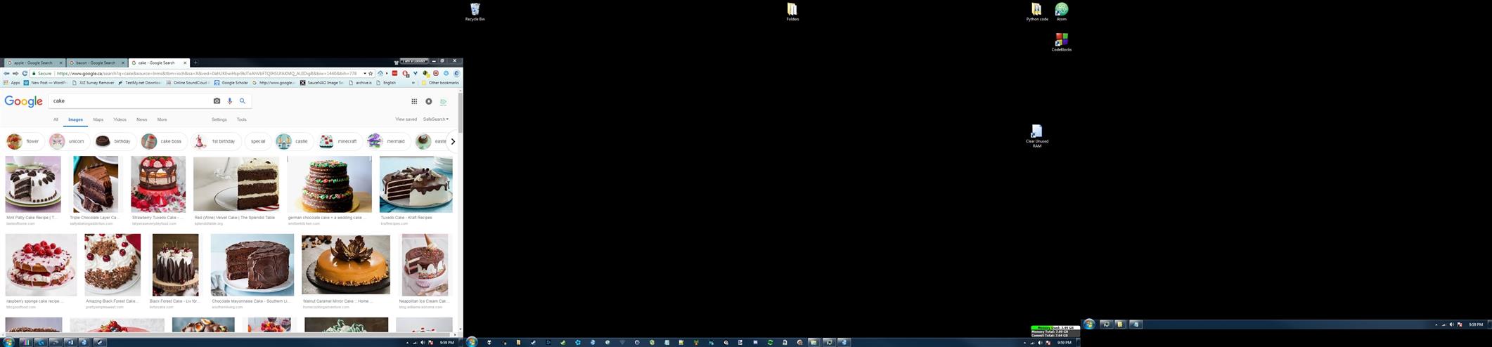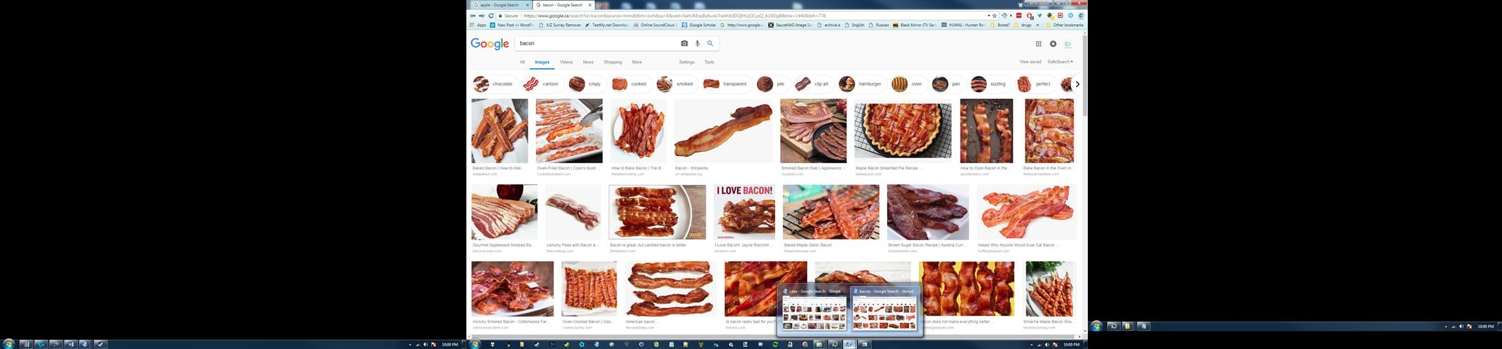 I have a chrome window with tabs of google images of: Apple, Bacon, and Cake