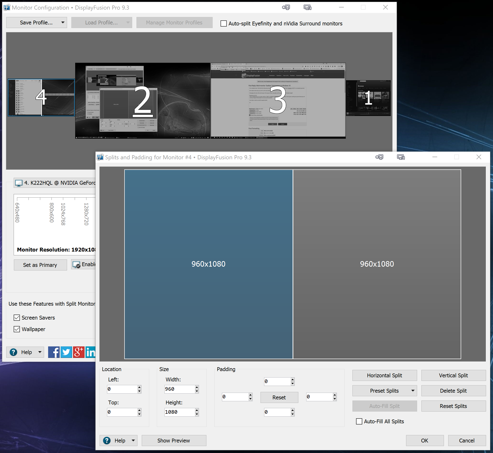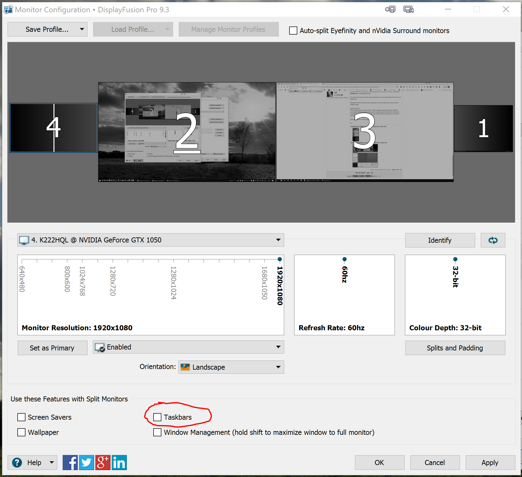 No worries! I've figured out what's happening here. Those advanced settings were in DisplayFusion long before we added Monitor Splitting as a feature, so they only work for non-split monitors (or when you have the taskbars feature disabled in the splits configuration).