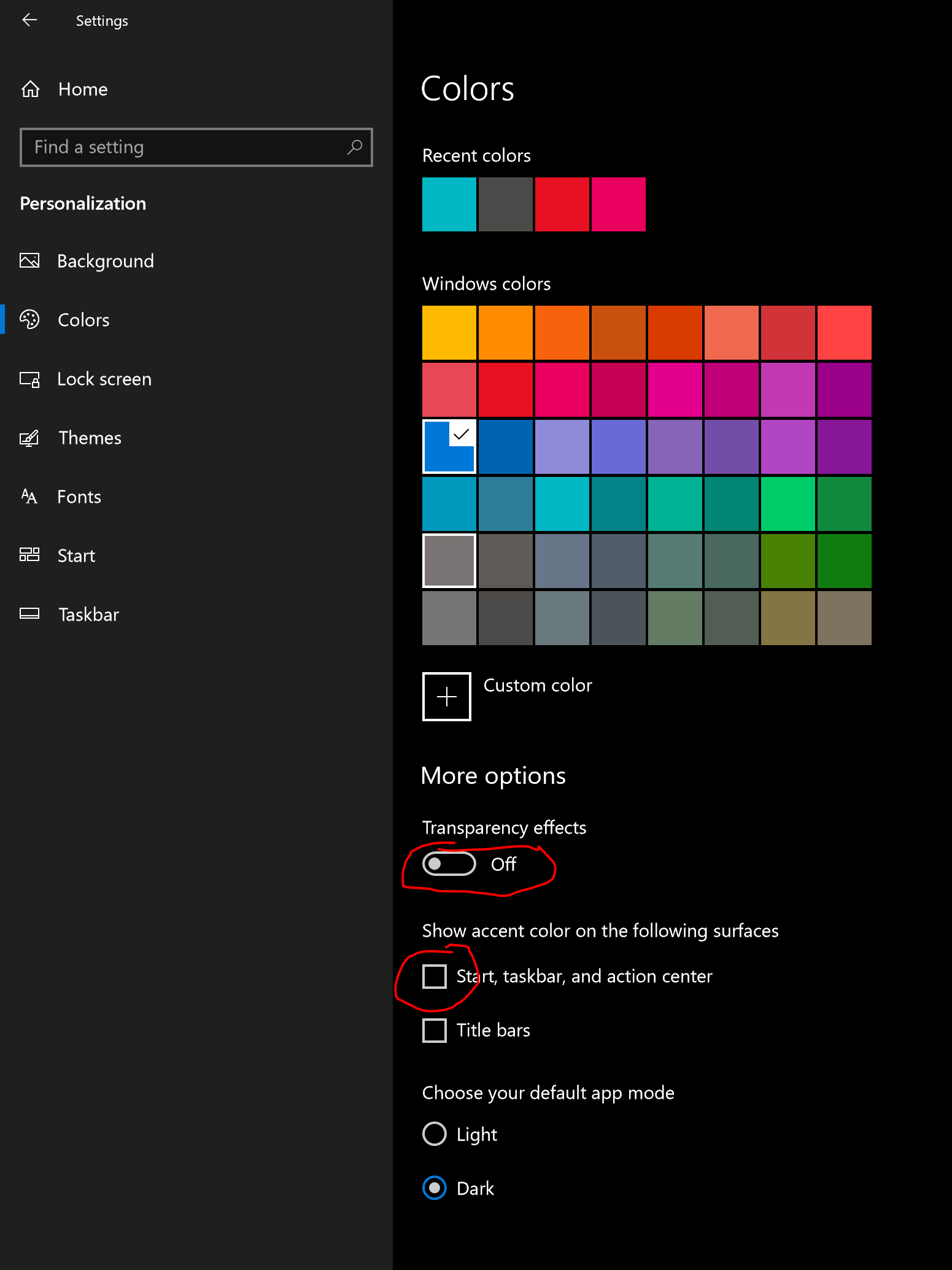 Even though transparency effects are disabled in Windows 10 settings (see attached images) the text was still transparent.