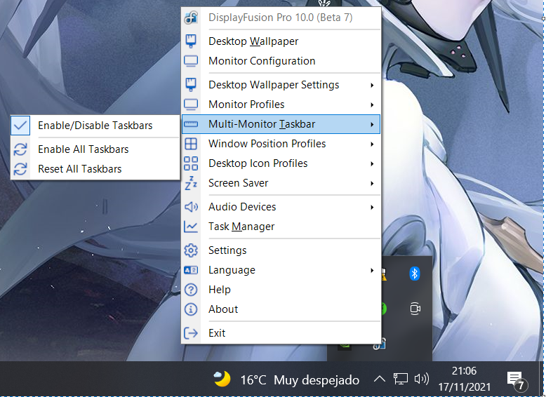 When i right-click context menu in Multi-Monitor Taskbar im unable to check any options like adjust the size, position and auto-hide settings, Start Button, and more options for that Taskbar. Its the same with winsdows position profile and desktop icon profile.