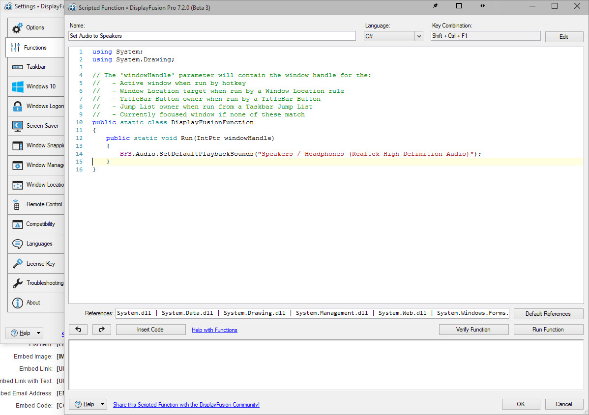 I was wondering why I can't save the same monitor configuration under different profiles. I would like to have one configuration with one set of audio devices and another configuration with another set of audio devices. The easy way would be able to save them as different profiles but Display fusion won't let me do that. The other option would be to have a hotkey setup for audio devices but the only one that I can find just cycles through them.