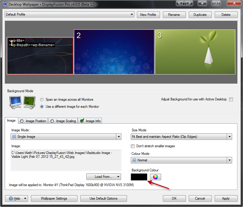 Now,.. the wallpaper function is great but it could do with some work (I'm using the google image portion of it) - I really wish it would force my Windows Desktop background colour to solid black, for the few images which aren't entirely 100% of the screen, the default blue background just doesn't work right. (I've set it to black manually but it seems to be resetting to blue)