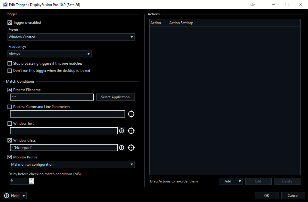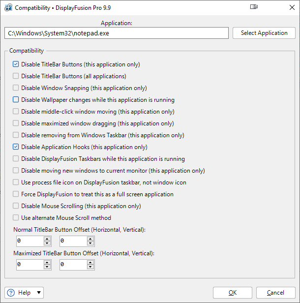 I have DisplayFusion set up to maximise all program windows to 100% on their respective monitors. However, I do not want this to apply to the Notepad.exe application.