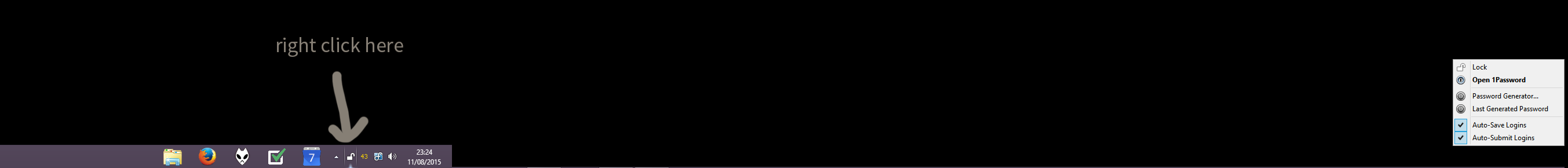 When I click on 1password specifically, the menu will always appear on the default Windows taskbar, rather than the Display Fusion taskbar that I click it on. If I move the default Windows taskbar to a different monitor, when I right click, the menu will appear on that.