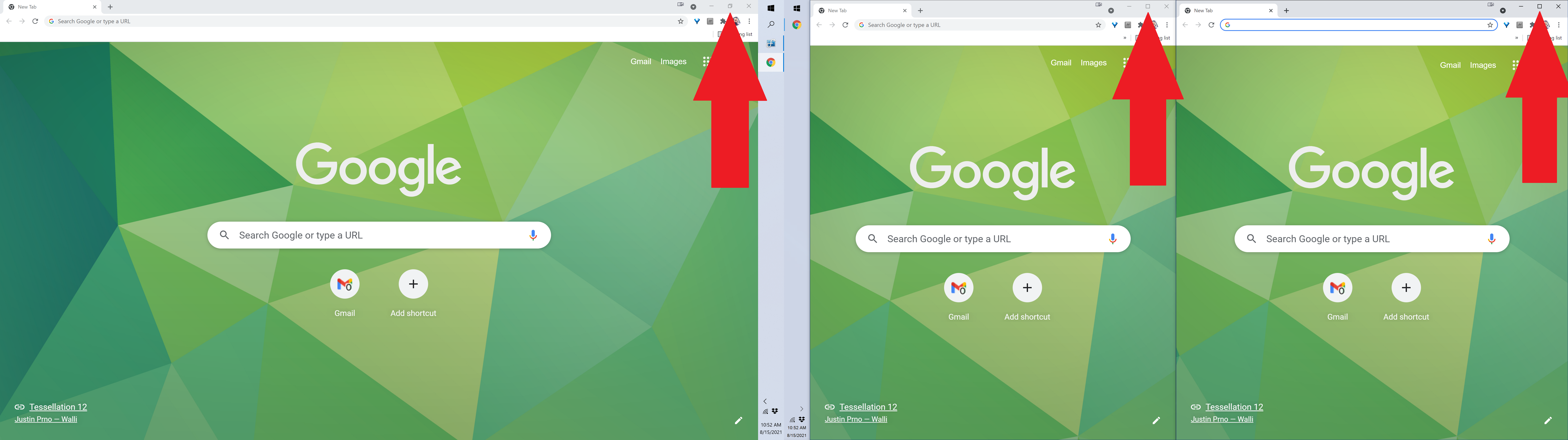 However, on the monitor with the split, when I maximize Chrome, the button does not switch to the Restore Down function.