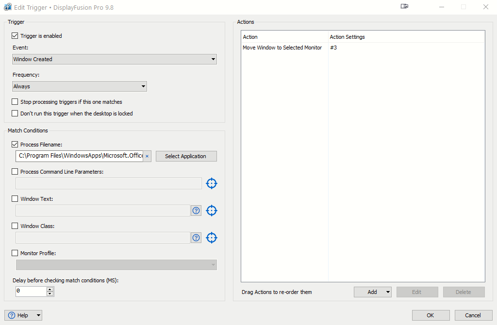I've attached a screenshot of a trigger below that you can copy to move OneNote to a specified monitor automatically when launched.
