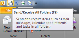 This is the public beta. Version 14.0.4536.1000. I think it has to do with the button for send/receive being on the very top of the Outlook frame. And yes, a left click and yes only when DF is on.