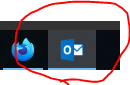 When moving the Outlook window to the primary screen, the icon is visible in the Windows default taskbar.