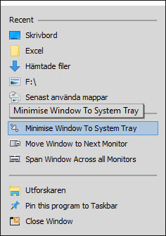 If you right click and select Move window to system tray then that what is does but if you right click it in the system tray no matter which option you try to choose, it will disappear when you mouse over it.