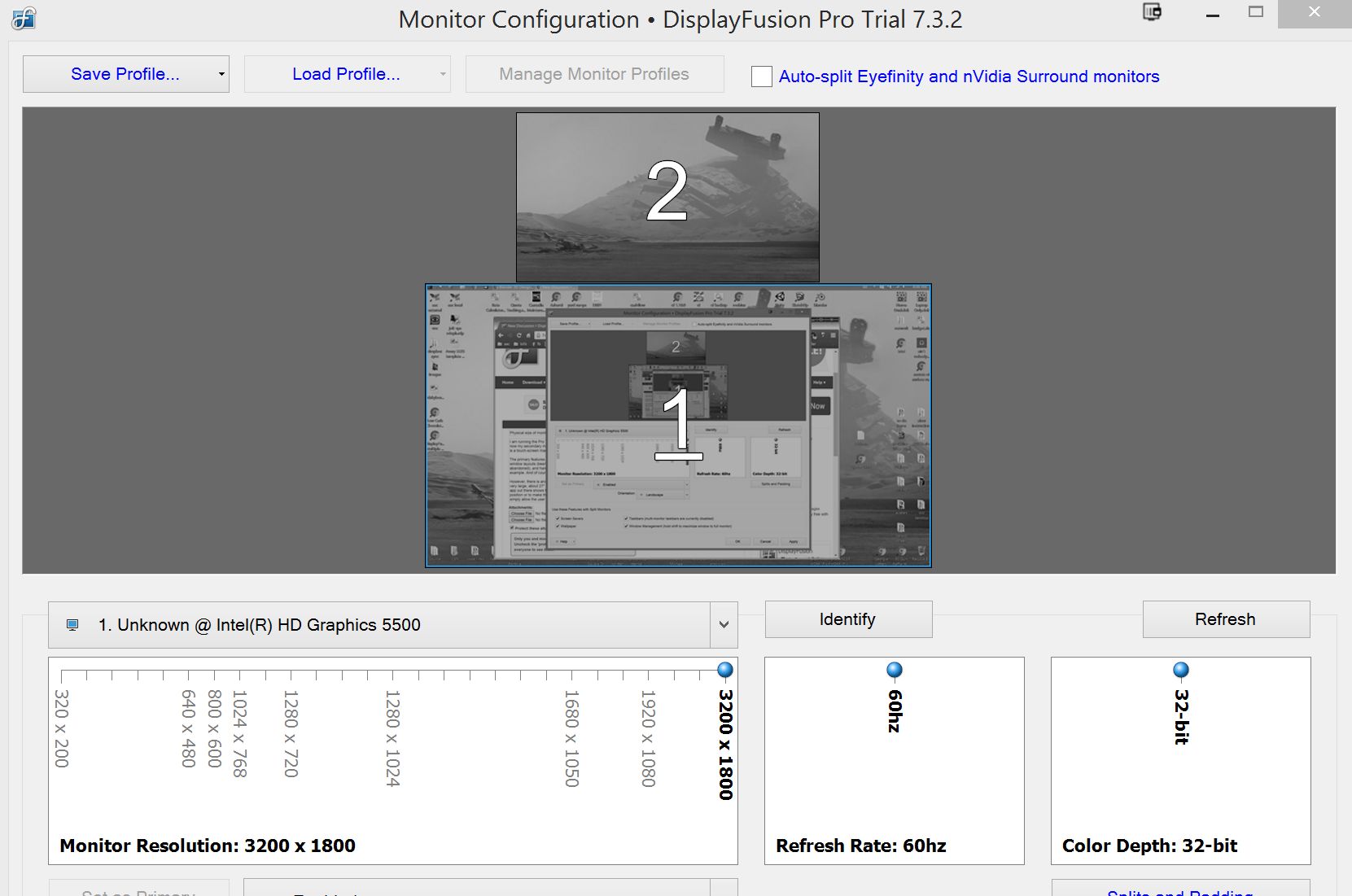 I am running the Pro 7.3.2 Trial version. First basic background info. Windows 8.1 on a Dell XPS13, native 3200x1800, and right now my secondary monitor is a Benq GW2765HT, native 2560x1440. I run Start8 and never use the Metro interface, although this is a touch-screen machine.