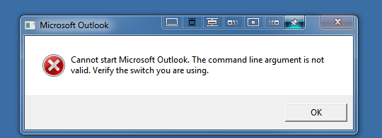 Outlook 2010 starts fine when pinned to the default taskbar.