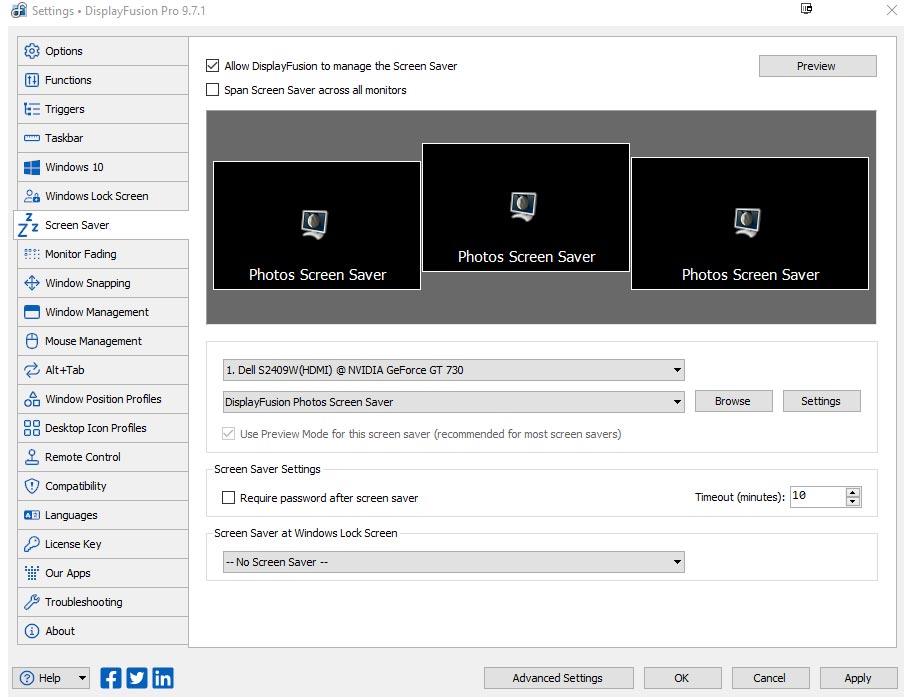 I use DF to display a screensaver slide show on my three monitors. Don't know if this has anything to do with the monitor sleep problem but who knows. I checked the box "Allow Display Fusion to manage the Screen Saver"