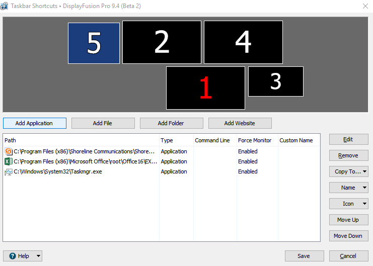 So that screenshot of the Windows display settings vs. the DisplayFusion display settings happened when the taskbar shortcuts were on the wrong monitors? Or are they just always on the wrong monitors?