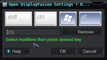 Basically, it activates the Options/Preferences window of whatever active app under the mouse cursor is. But I've had to bind every application I have to that key for the Display Fusion scripts/triggers to work in tandem with them. It mainly moves and resizes those Option windows automatically for me :/