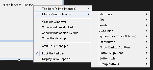 Thanks for the kind words! I should have clarified better, it's not possible in the current version of DisplayFusion. We know that it is possible, but it's quite tricky (undocumented APIs and such).