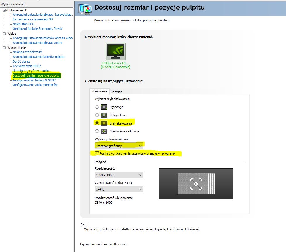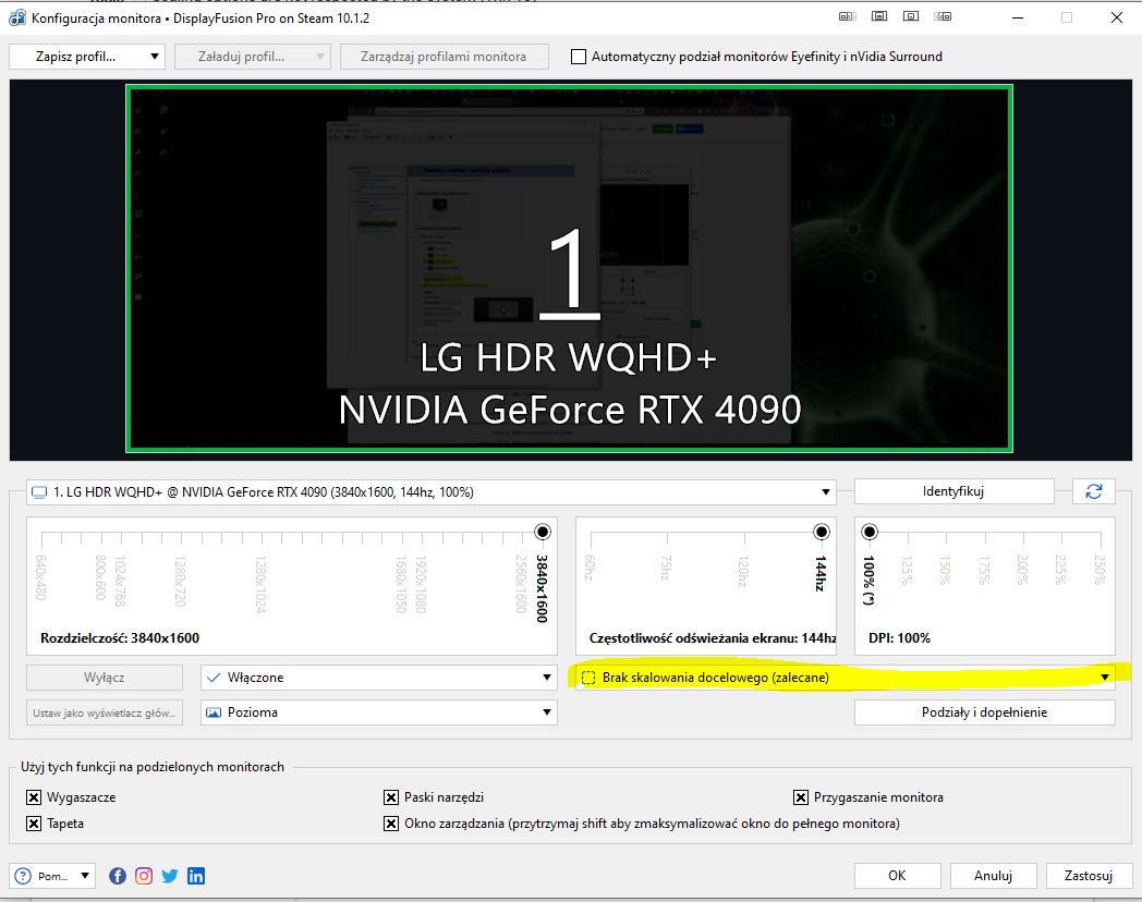 Additional observation is that when using DF monitor setting panel when I pick any other oprion regarding scaling and hit apply program returns to the first option from the list and does not remember my selection.