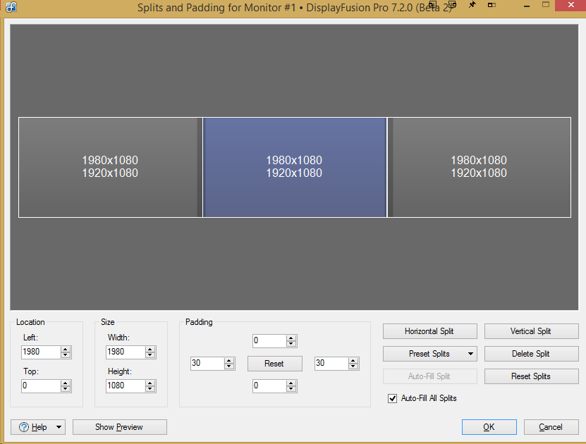 Basically I have 3 screens but due to NV Surround being on Windows sees them as just one big monitor. I used the split and padding features in DF to set it as 3 separate spaces and account for bezel correction. Everything is displayed perfectly with the windows maximizing in each separate screen and without expanding over the area "behind" the bezels but the taskbar in the middle screen seems to complete ignore this.