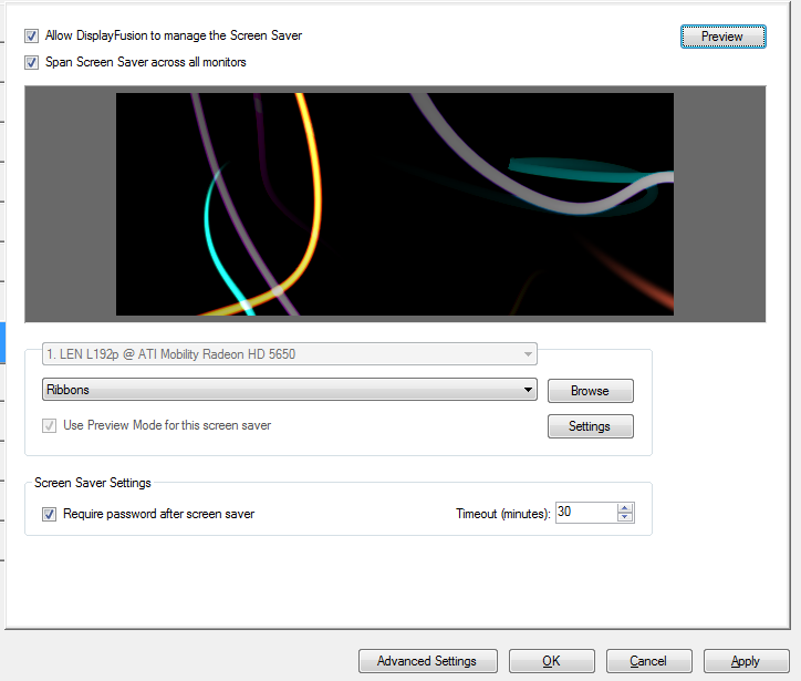 I'm using DisplayFusion Pro v3.3.1 with my Windows 7 laptop and 2 external monitors. I have tried several different screensaver options/settings but it never activates. 'Start Screen Saver' works sometimes but not always. Could programs running in the background cause the screensaver not to start? I am leaving my laptop on all night as I'm backing up data to a remote location but I hate that my screensaver isn't working. Any suggestions?