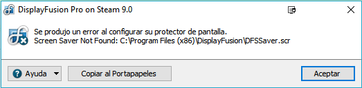 I tried different screensavers from DP option panel and everytime I choose one it shows me this popup.