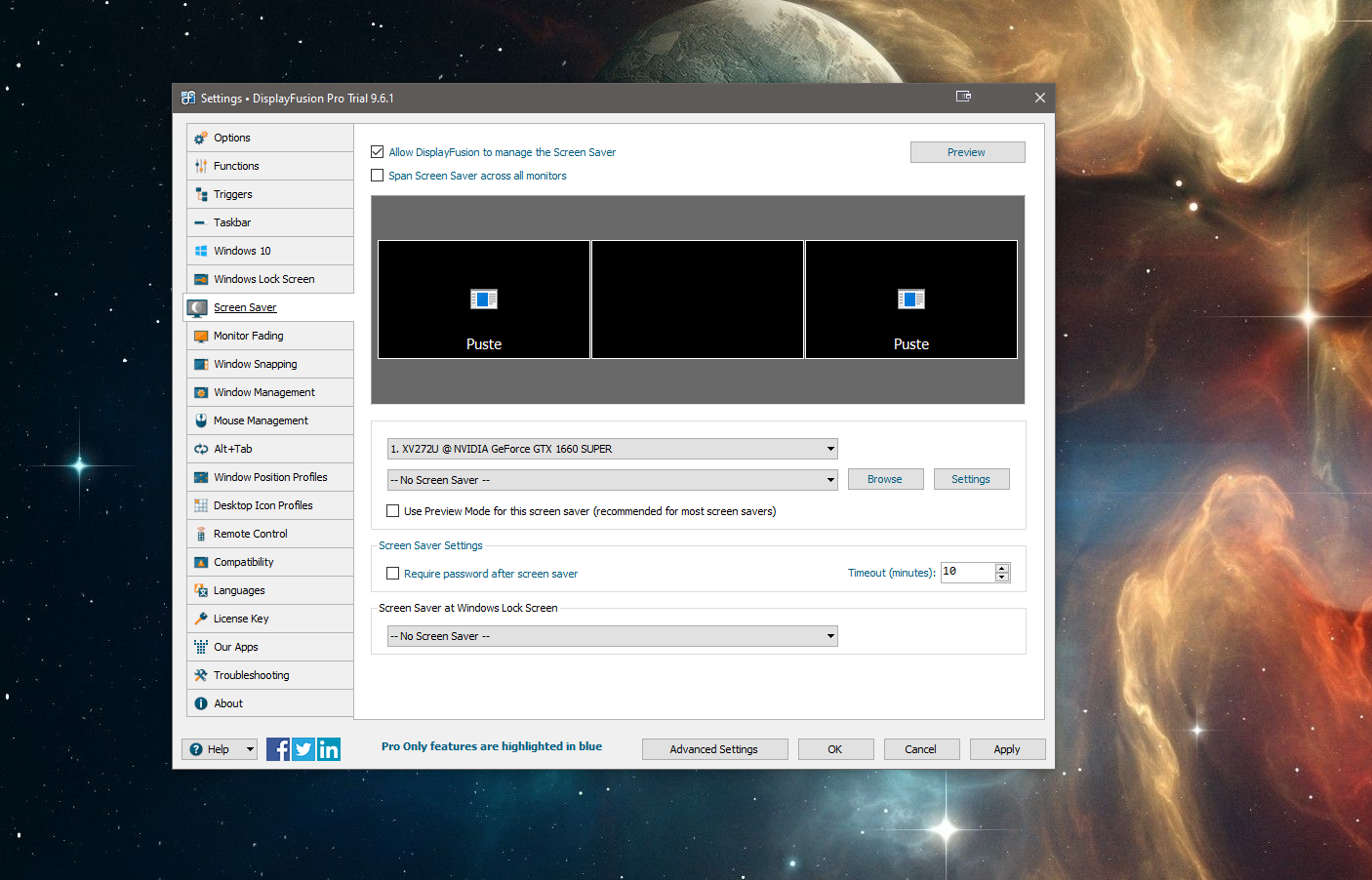 I have 3 monitors. I would like only the side monitors to turn off after 10 minutes and the central monitor to be turned on. It would help me in games when I play only on the central monitor and when it works only on the central monitor.