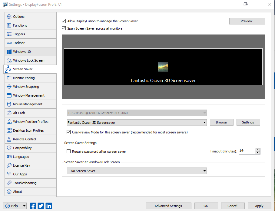 I am using Fantastic Ocean 3D Screensaver and it won't start under DF. I tried both with Splash screen saver enabled and disabled. Only black screens. Same when I hit Preview. It works fine on 1 monitor when I disable DF though. I have 3 monitors configuration. It works fine with some other not 3D screensavers I got.