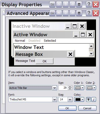 It looks like you're using some modified font sizes in the Windows XP display settings. Could you let me know what font sizes you're using (Window Title font, etc), so that we can set it up the same here to do some testing?
