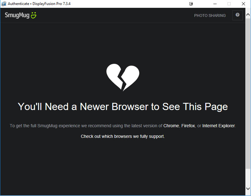 Smugmug issue: DisplayFusion Pro 7.3.4 Browser is too old
