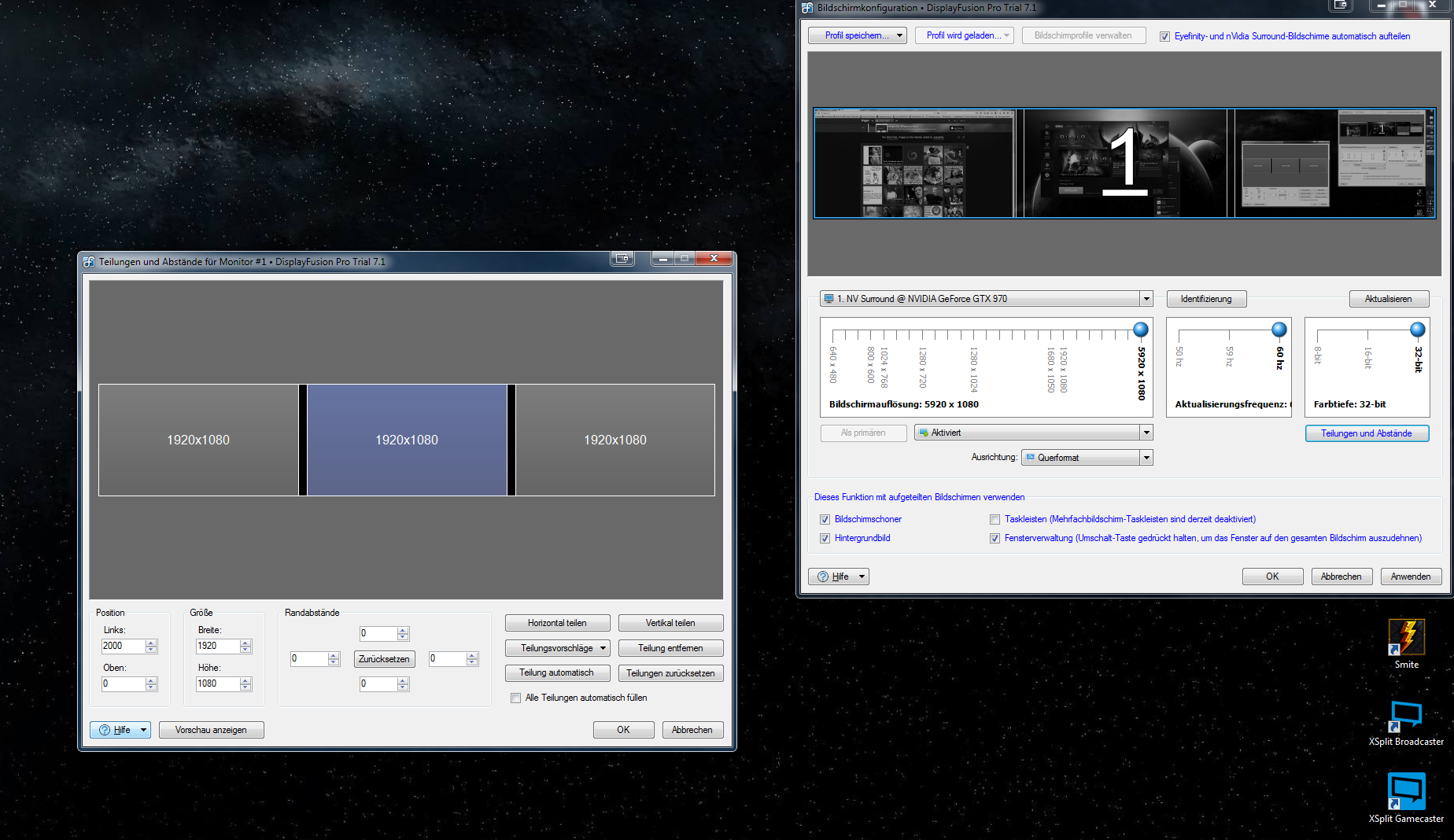 4. I still don't understand how to use different profiles effective. So I want a 3 single monitor setup all the time, except playing some games, where it should switch automatically into a surround setup (and maybe back when tab to desktop/exit the programm?)