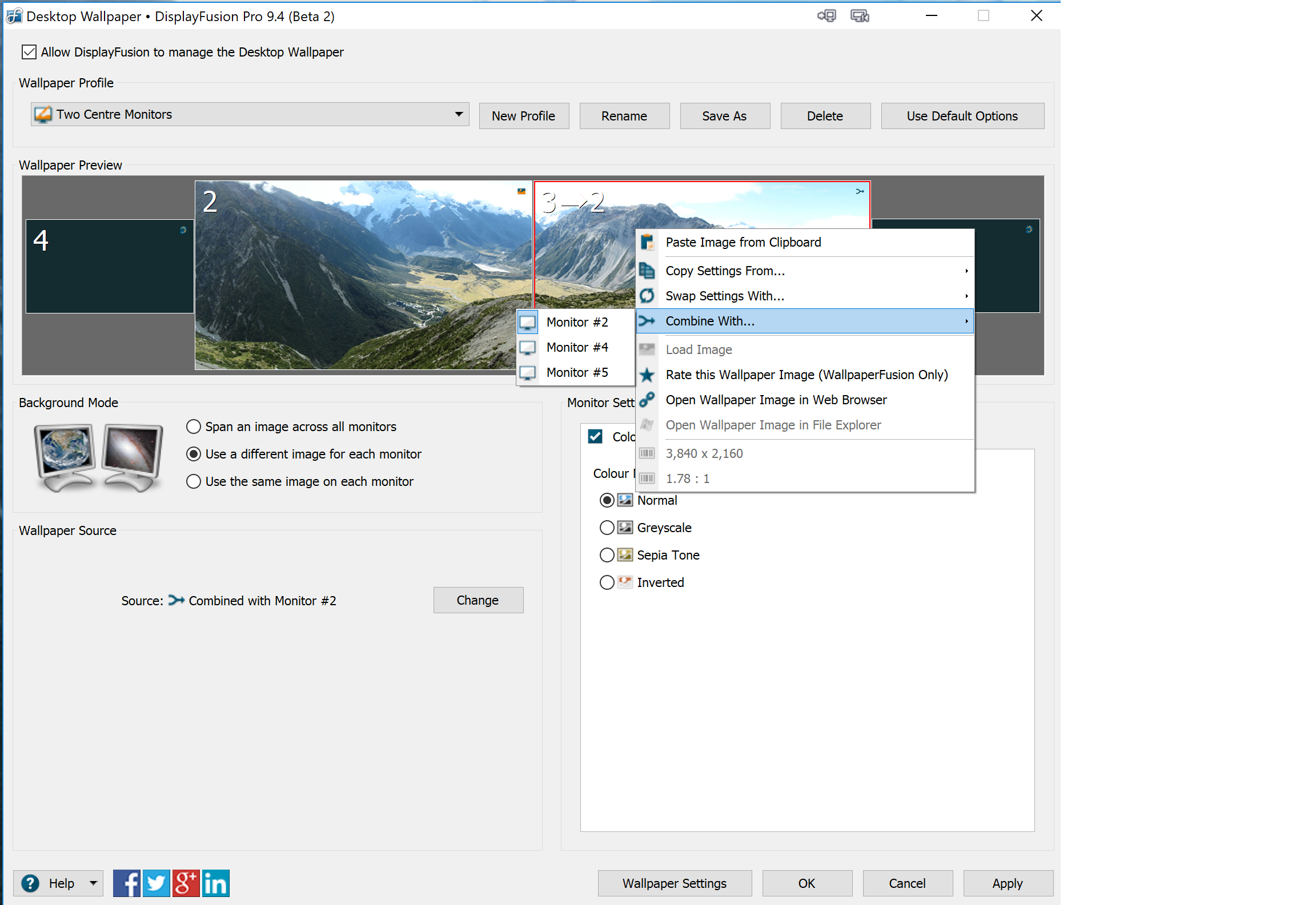 PS: I found the "Combine with monitor" options a little too hidden-away (in my humble opinion). As a product improvement suggestion; I'd like to suggest the "Combine with Monitor" feature is moved to a more prominent place on the main Wallpaper config page.