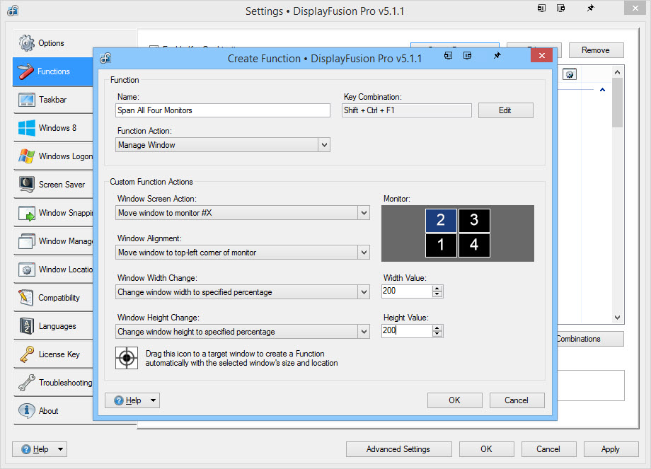 I am trying to span an application to two monitors. I followed this post to create a custom function but it is not working for some reason. Can you please help me with this? Attached is the screenshot of the custom function I have created. Also, I tried Span Windows Across all Monitors even that didn't work.