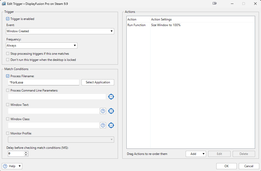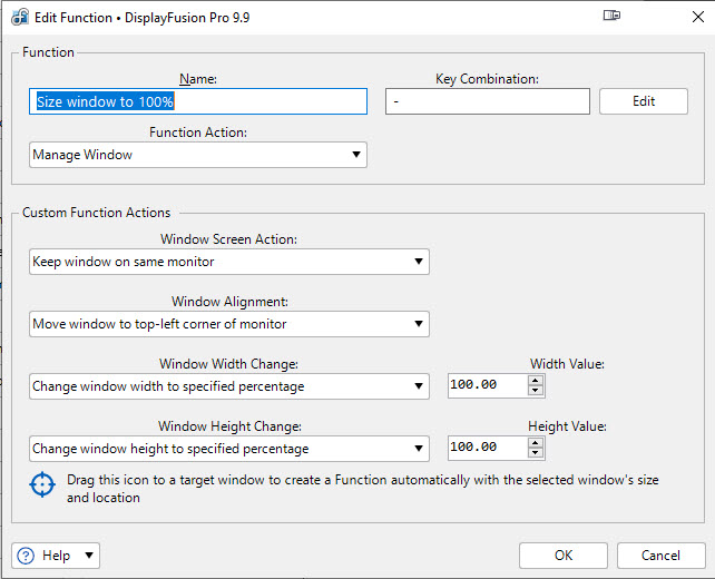 Thanks, I'll give it a try. I think DisplayFusion is having trouble recognising the app (I tried both with Process Filename and Window Class), so it might still not work, but we'll see.