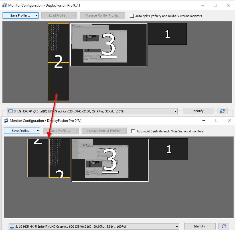 My problem now is that it will be 2 wide to be useful, so I want to arrange the hd monitors vertically side by side, and I therefore need to move parts of the screen to accomplish this (see attachment)