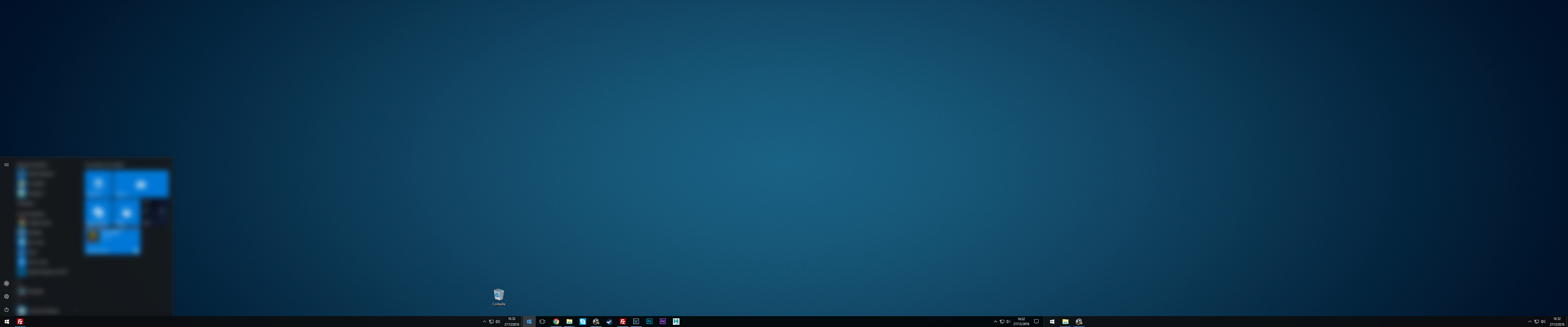 As expected one taskbar appears on each monitor. The issue is that clicking any of the 3 start menu icons always open the start menu on the left screen. The start menu should show up on the screen where the icon was clicked.