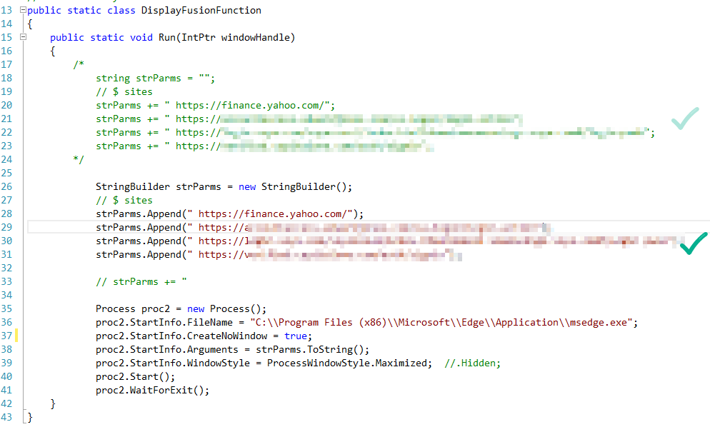 - In Green, I was able to get Edge to launch with parameters. Here, Edge is spawned with three distict tabs.