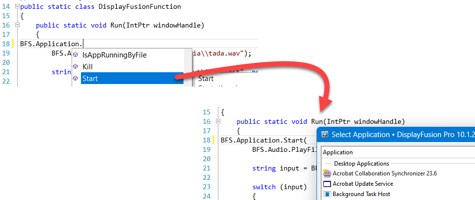 - backspace over the .Start and enter the . to invoke intellisense.