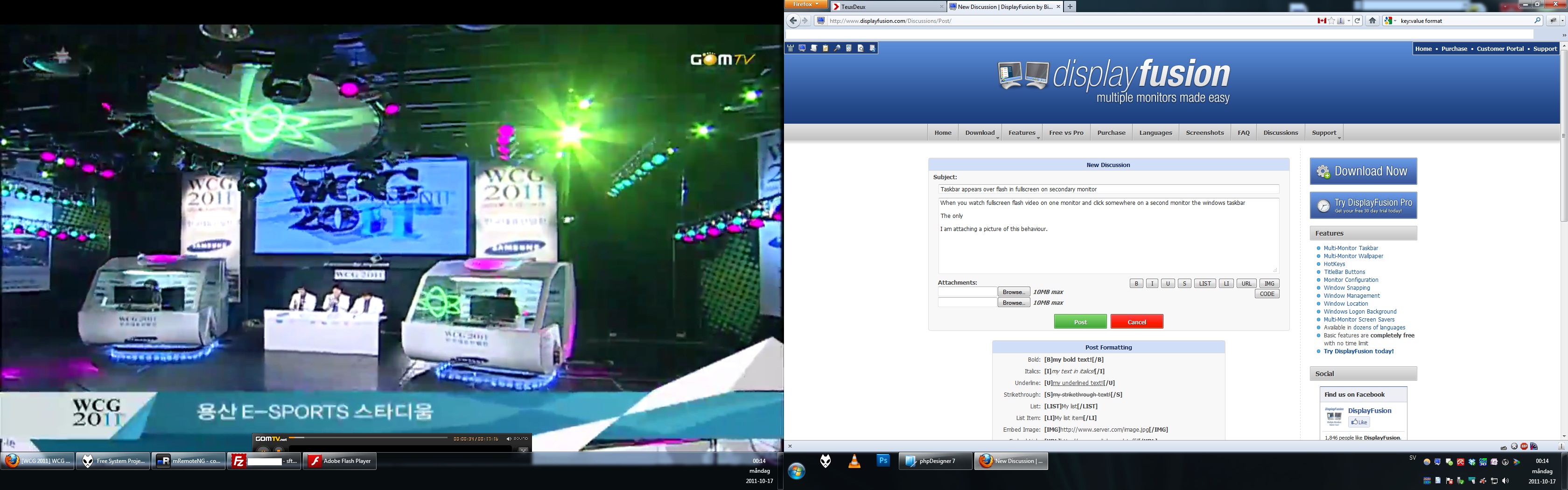 When you watch fullscreen flash video or VLC on secondary monitor and click somewhere on the primary monitor the displayfusion taskbar appears over the full screen flash video.