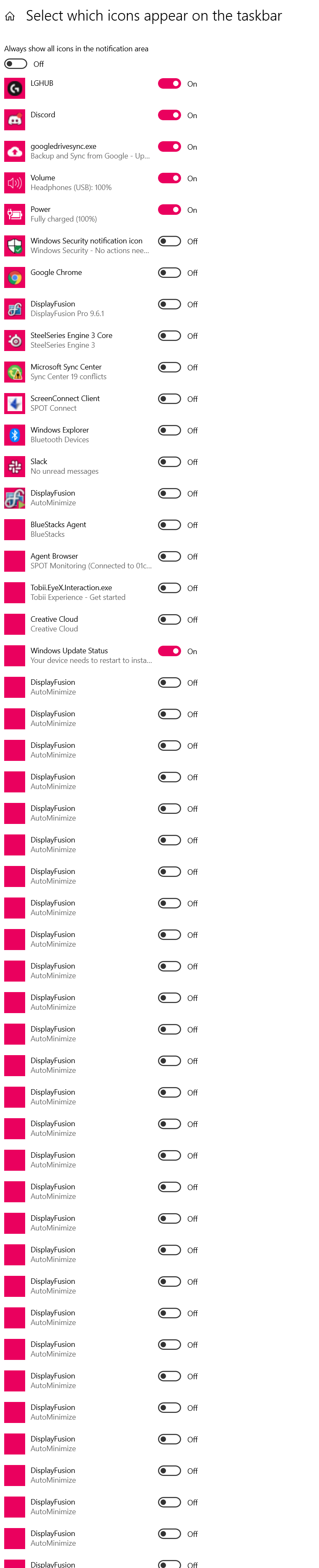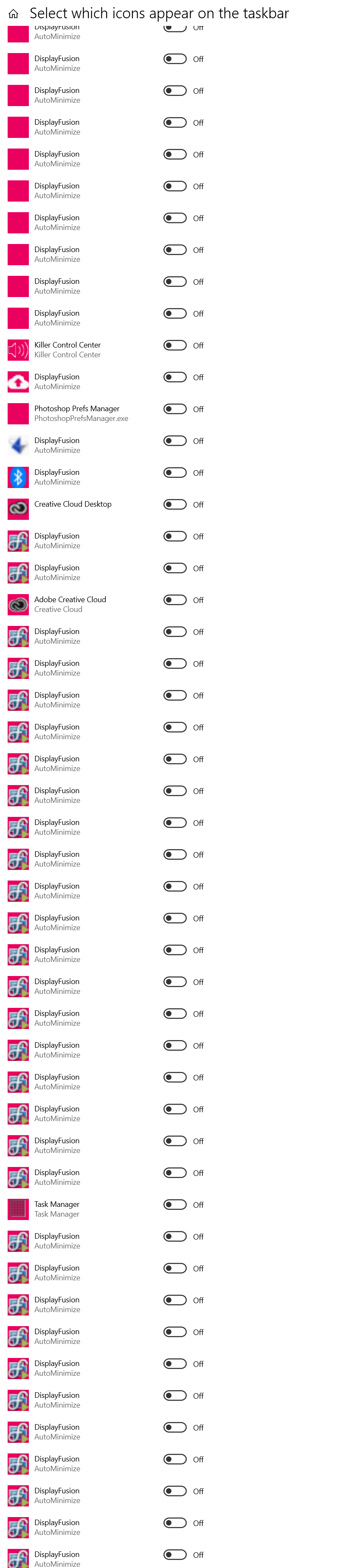 Is there anyway to cleanup all these entries in my Taskbar settings? There are dozens, and dozens, and dozens of these DisplayFusion things from a Trigger Fuction I made (but have since disabled)