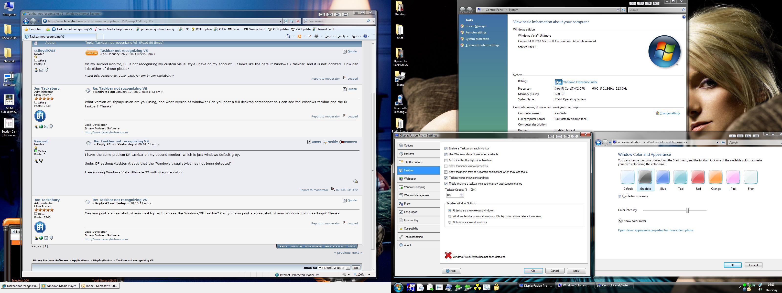 On my second monitor, DF is not recognizing my custom visual style i have on my account. It looks like the default Windows 7 taskbar, and it is not iconized. How can i do either of those please?