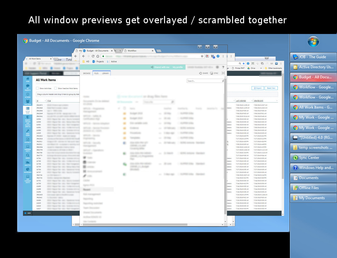 - screenshot attached - you can see notepad, browser, etc scrambled together inside the thumbnail