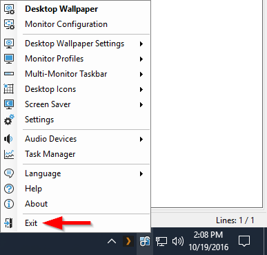There is no option to click "EXIT". I may not have a DisplayFusion taskbar. I have attached a picture of what comes up for my options.