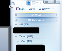 What version of Trillian are you using? Are the buttons still floating way to the left? Are you using a custom theme?